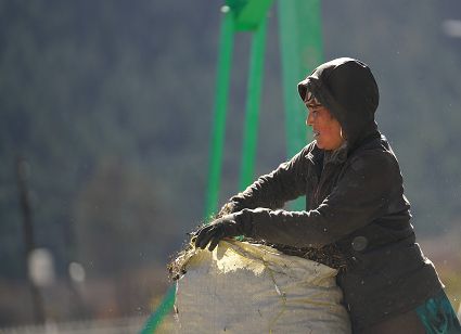 陽光溢彩的早晨,我已經從對面山上的柏木林里回來了。中午時分,村里的人們又開始打碾豆子了,那場面十分誘人。感覺上我已經離開村子很遠了,而在車巴河岸邊,我又一下回到了村子。勞動的人,那個不冰清玉潔呀!
