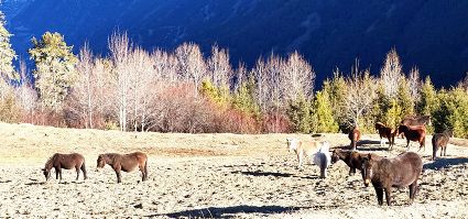 洛克所經(jīng)過的地方就是三巖龍鄉(xiāng)的猛董,這是一處鮮為人知的隱世天堂。猛董有“五絕”,即“山、湖、谷、寨、寺”,山是被當(dāng)?shù)厝诵欧顬樯裆降柠湹刎暩拢湹兀卣Z為珍珠),湖是神山腳下的麥地措(珍珠湖),谷是雅礱江谷地的藍(lán)月山谷,寨是猛董“后花園”的普米寨子,寺是修建于明清時期的猛董古寺。