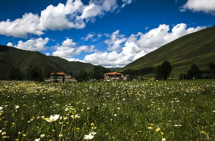 阿須草原,肅穆中的滄桑神秘。雅礱江源頭的世紀(jì)歌韻,青稞間回蕩的輕吟,飽含著世事席卷歲月與生命的贊歌。挺立于藍(lán)天下的英雄塑像,將史海中起伏的頌歌,融入艷陽移動的光輝中。我長久駐足仰望,沉緬于歷史的風(fēng)塵,英雄號角吹奏的激情從逝去的歲月中傳出,經(jīng)久不息。早晚盤旋于草崗叢野的驟風(fēng),讓草叢的搖動和河柳的起伏都隱蘊(yùn)著刀光箭簇的頌歌。靜聲聆聽,激越的蹄音正從天邊遙遙傳來。