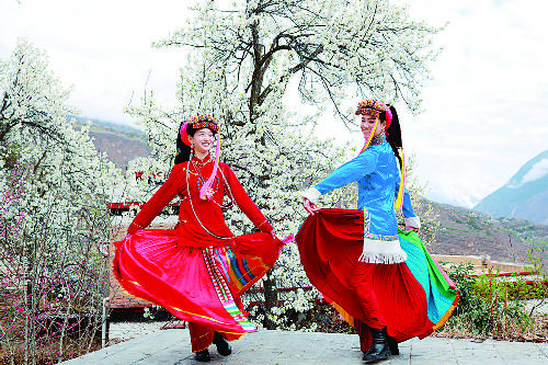 陽春三月,萬物復(fù)蘇,在這個(gè)春意盎然的季節(jié),雪白的梨花,正含苞待放,一切都生機(jī)盎然,再搭配藏寨與雪山,盡顯“雪域江南”的壯闊與秀美。