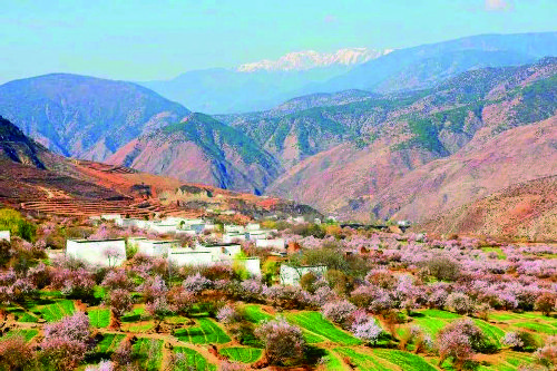 山坡上、田野里、溪流邊、屋舍間、山林處,白色、粉色、紅色,一朵兩朵,一樹又一樹,鋪滿山坡,伸向河谷,蔚然成花海。