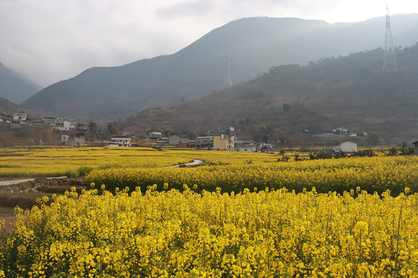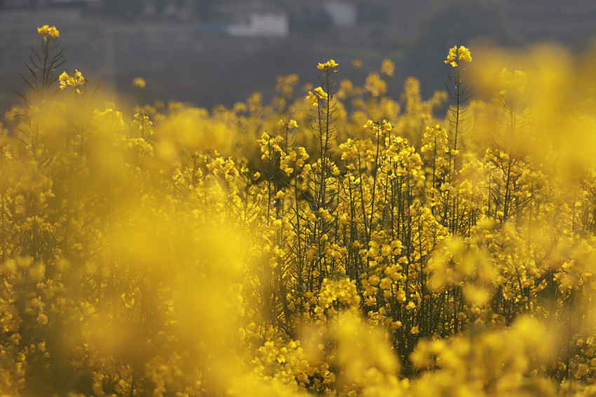 金黃的油菜花美美地填滿(mǎn)了整片田野,與藍(lán)天白云、村落人家相映成趣。順著田埂漫步花海,花香四溢,沁人心脾。微風(fēng)吹來(lái),一朵朵油菜花在風(fēng)中搖曳,嬌嫩的花蕊隨風(fēng)飄動(dòng),仿若身著金黃色輕紗的少女在翩翩起舞,靈動(dòng)迷人。在花叢中飛舞的蜜蜂為花田增添了靈動(dòng)和生氣,一掃冬日的沉悶,帶給人明快舒朗的好心情。成片盛開(kāi)的油菜花與前來(lái)賞花的游人相映成趣,游人們拿出手機(jī)、相機(jī),尋找最佳的角度,定格醉人美景,讓人忍不住贊嘆:好一番田園美景。