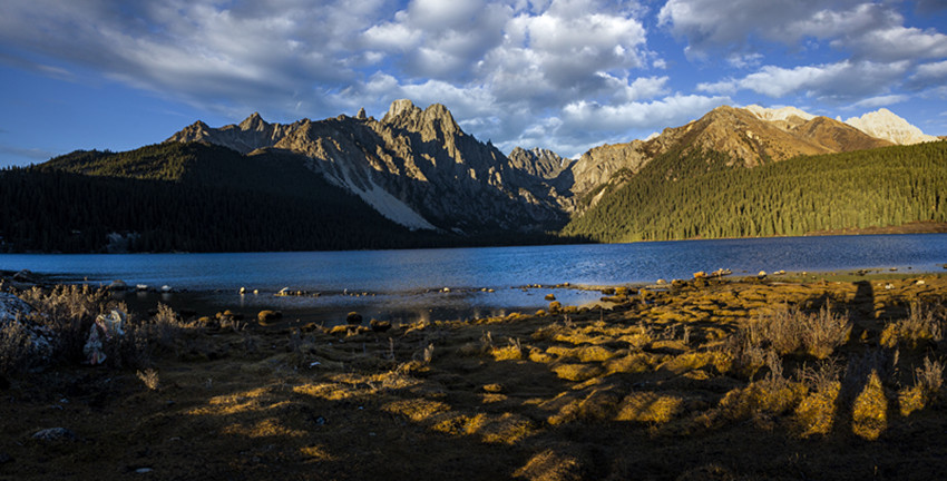 當(dāng)秋風(fēng)輕輕吹過(guò)巴塘的時(shí)候,無(wú)論雪山,還是湖水,還有那藍(lán)天白云,都有了一種高遠(yuǎn)而空曠的美。那高聳入云的雪峰,或是田間地頭的金色,總有一抹明亮的色彩,令你喜歡。我喜歡雪山的巍峨壯麗,也喜歡高山流水的潺潺,更喜歡亞莫措根的彩云。