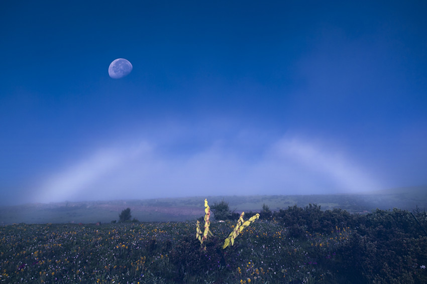 月亮在夜空掛著,給雨后清爽的熱梯濕地和重疊的遠(yuǎn)山,鍍上了一層濕潤(rùn)的銀白。