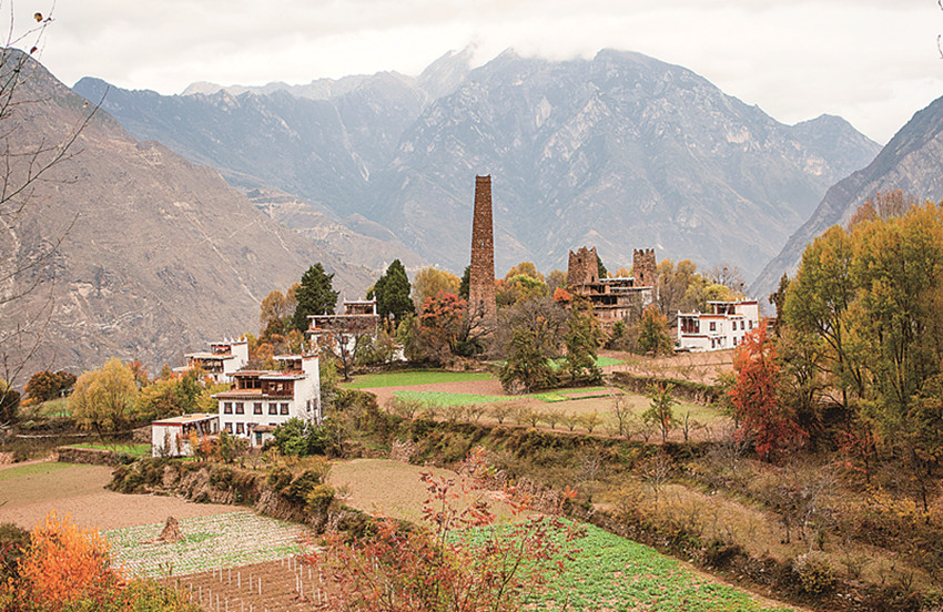 四季更迭,中路藏寨的魅力各異。秋天,正是藏寨最為絢爛的季節(jié)。造型獨(dú)特、別致的藏式民居,蜿蜒曲折的林間小道,組成了一幅美不勝收的畫卷。藏寨依山勢迤邐連綿,分布在相對高差近千米的山坡上,藏式樓房灑落在五彩斑斕的彩林中,與山谷、溪流、雪峰交相輝映,極富層次,構(gòu)成了一幅恬靜如詩的優(yōu)美畫卷。