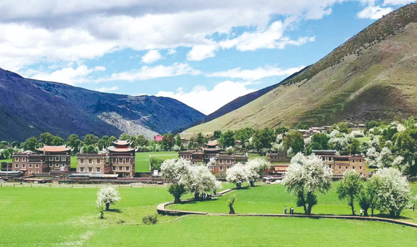每年5月下旬,貢嘎海棠盛放的甲根壩就瞬間變身為秀美的世外莊園,木雅藏房錯(cuò)落有致,青稞麥田綠意蔥蘢,潔白的花朵成簇成團(tuán),溫暖漫山遍野,微風(fēng)輕拂,花落成雪,飄滿碧空如洗的天空,花兒灑在田間、落在地頭,在藍(lán)色的天空、棕色土壤和青綠色樹葉映襯下,顯得清新至極。