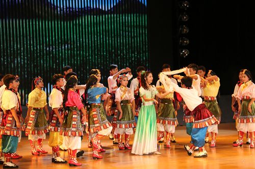 在歡快的音樂(lè)聲中,《師恩如歌》拉開(kāi)了“園丁頌”文藝晚會(huì)的序幕。悠揚(yáng)的歌聲,歡快的舞蹈,熱烈的掌聲,演繹著同一個(gè)主旋律:“老師,是您為我們開(kāi)啟了智慧的大門(mén),加減乘除,算不盡您做出的貢獻(xiàn)!詩(shī)詞歌賦,頌不完對(duì)您的感激!千言萬(wàn)語(yǔ)只能匯成一句話:老師,您辛苦了,我們永遠(yuǎn)感謝您!”晚會(huì)以“園丁頌”為主題,分為“播種希望”、“愛(ài)的光芒”、“九月禮贊”三個(gè)篇章。歌曲《圓夢(mèng)中國(guó)》、情景劇《守望白云》、舞蹈《老師親,媽媽親》等13個(gè)節(jié)目先后上演。一首首膾炙人口的歌曲,唱出了對(duì)人民教師的無(wú)限深情,一個(gè)個(gè)激情昂揚(yáng)的舞蹈,道出了對(duì)人民教師的萬(wàn)般感激。旋律優(yōu)美、歡快熱烈、精彩紛呈的晚會(huì)深深地吸引了現(xiàn)場(chǎng)觀眾的眼球。一聲聲發(fā)自內(nèi)心的問(wèn)候,一句句來(lái)自心靈的祝福,將晚會(huì)一次次推向高潮,晚會(huì)現(xiàn)場(chǎng)掌聲雷動(dòng)、歡呼雀躍,《吉祥祝?!犯栉璞硌轂檎_(tái)晚會(huì)畫(huà)上了一個(gè)圓滿的句號(hào)。