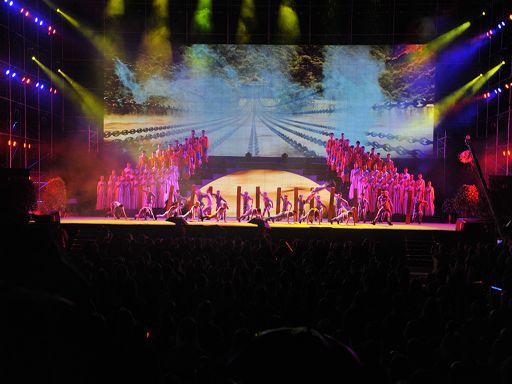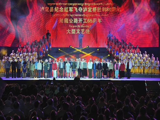 5月29日晚,一臺(tái)由中共瀘定縣委、瀘定縣人民政府主辦,四川師范大學(xué)承辦的瀘定縣紀(jì)念紅軍飛奪瀘定橋勝利80周年暨川藏公路開工65周年大型文藝晚會(huì)《永遠(yuǎn)的豐碑》在瀘定縣瀘定橋廣場(chǎng)震撼上演,200多名演職人員參與演出,萬余人現(xiàn)場(chǎng)觀看。