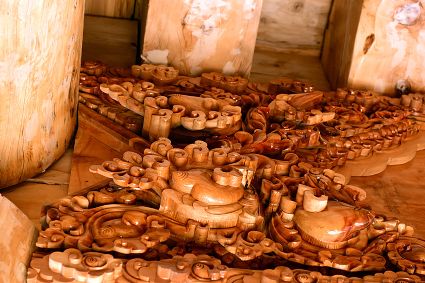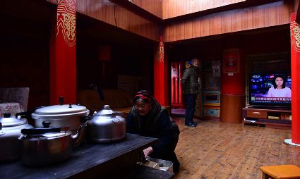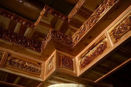 道孚民居的精華在其內(nèi)部,木材是其唯一的內(nèi)部裝飾材料,而裝飾,是一項繁瑣得曠日持久的藝術(shù)勞作,往往建房只需一兩個月,內(nèi)部裝飾則要幾年甚至幾十年。民間建筑藝術(shù)家們沉醉在細(xì)致入微的勞作里,讓每一個圖案都盈溢一份心底的吉祥,讓每一筆描摹都傳遞一份動人的傳說。房間四壁、房門和梁柱上一般都繪滿了精致典型的藏式壁畫,窗上分別雕刻著龍、鳳、仙鶴、麒麟等吉祥圖案。每間屋的大門上都鑲嵌醒目的兩個獅頭大銅環(huán),凸顯了與之相融的漢文化的特點。置身其間,色彩斑斕中,身邊盡是龍飛鳳舞,鶴翔麟躍。繽紛中細(xì)端詳,真是藏民族藝術(shù)的天堂!