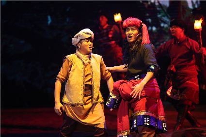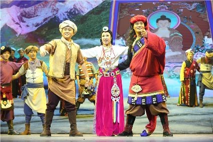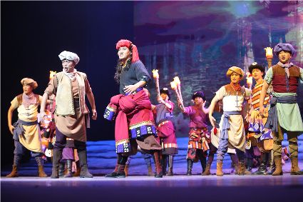 初生的音樂(lè)劇《康定情歌》是個(gè)聽(tīng)話謙遜的孩童,專(zhuān)業(yè)人士的諄諄教誨一定會(huì)牢記在心;他也是個(gè)具有思鄉(xiāng)情結(jié)的游子,自己的一顰一笑都流露出濃郁的民族風(fēng)采;同時(shí)他也是個(gè)頑強(qiáng)拼搏的逐夢(mèng)少年,即便汗水和淚水匯成一道道溝壑,依然挺胸不低頭,只為在明天,成為更好的自己。 (圖片由州歌舞團(tuán)提供)