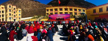 11月18日,筆者跟隨州委群眾宣講團(tuán)來到鄉(xiāng)城縣熱打鄉(xiāng)日然寺,宣講現(xiàn)場宏大的場面和龐大的觀眾人數(shù)給了我們不小的驚喜,場地雖然是安排在了日然寺,但附近的村民都趕來聆聽宣講,368人齊聚一堂,讓日然寺的壩子顯得有些擁擠。
