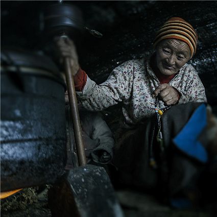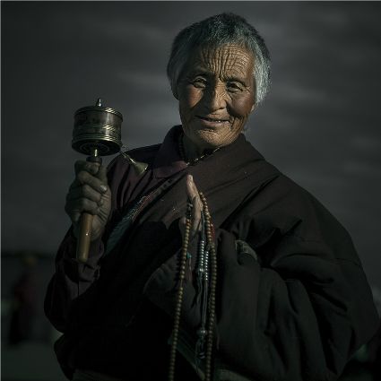每當(dāng)我手持相機(jī)時,對他們始終懷有一種敬畏,我捕捉到他們眼神里流露出虔誠??粗?jīng)筒上“甲多”的飛轉(zhuǎn),我陶醉了,醉在那轉(zhuǎn)經(jīng)筒的旋轉(zhuǎn)舞動,醉在那轉(zhuǎn)經(jīng)筒傳誦的故事,醉在那一張張手持轉(zhuǎn)經(jīng)筒的面孔,還有,還有因祈禱音符助推而從未停止的轉(zhuǎn)經(jīng)筒……
