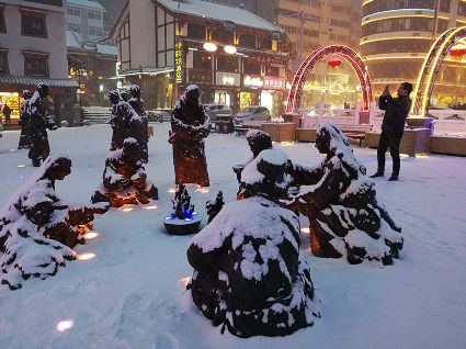 “風(fēng)雨送春歸,飛雪迎春到。已是懸崖百丈冰,猶有花枝俏?!?月4日傍晚,大片大片的雪花,從昏暗的天空中紛紛揚揚飄落下來。霎時間,山川、河流、城市,全都籠罩在白蒙蒙的大雪之中。黃昏的雪,下得深切切的,好象有千絲萬縷的情緒似的,又像海水一般洶涌,能夠淹沒一切,還有一絲揭開藏頭露尾般的裸露感。雪花形態(tài)萬千、晶瑩透亮,好象出征的戰(zhàn)士,披著銀色的盔甲,又像是一片片白色的戰(zhàn)帆在遠航…… 落光了葉子的柳樹上,掛滿了毛茸茸、亮晶晶的銀條兒;冬夏常青的松樹和柏樹,堆滿了蓬松松、沉甸甸的雪球。那一片雪花在空中舞動著各種姿勢,或飛翔,或盤旋,或直直地快速墜落,鋪落在地上?!昂鋈缫灰勾猴L(fēng)來,千樹萬樹梨花開”——這是雪的燦爛;一場瑞雪,扮美了康定,年味籠罩的康定城,嫵媚妖嬈。無論是背水姑娘、有著年味兒的將軍橋,還是大紅燈籠高高掛的康定門,都在雪后別有一番景致。與美景合影、和朋友玩雪都是最佳選擇。在風(fēng)雪中,交警不畏嚴寒默默堅守崗位 ,指揮交通疏堵保暢。他們的身影在皚皚風(fēng)雪路上站成一道道最美的風(fēng)景,溫暖了康定。從早上六點開始,康定的環(huán)衛(wèi)工就迎著刺骨的寒風(fēng),開始了除冰雪保通暢的行動,在積雪覆蓋的康定城,早起的商販樂呵呵地做起了買賣;民工迎著雪后的寒風(fēng)出門務(wù)工,他們是最可敬的人。