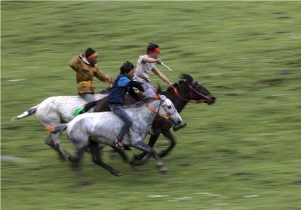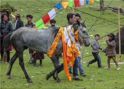 夏天是草原最美的季節(jié),道孚縣玉科草原在這個季節(jié)里正舉辦久負(fù)盛名的賽馬活動。五顏六色的彩帶飄舞在牛毛大帳篷周圍,喜慶氣氛四處洋溢。來自遠近牧區(qū)的親屬也專程趕來玉科草原訪親會友,參與賽馬角逐,濃郁的民族盛會令人耳目一新。