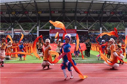 “本屆少數(shù)民族傳統(tǒng)體育運(yùn)動(dòng)會(huì)的會(huì)徽以格薩爾王賽馬登位為基本形象,由字母‘SC’組成的騎手代表‘四川’,數(shù)字‘15’組成了昂揚(yáng)奔騰的‘馬’為主體的形象,代表‘15屆民運(yùn)會(huì)’。這既有藏民族特色,又顯得美觀大方。”在開幕式現(xiàn)場(chǎng),來(lái)自杭州的陳琳興致勃勃地說(shuō)。