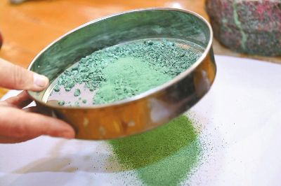 傳統(tǒng)的唐卡是藏族文化中一種獨具特色的繪畫藝術(shù)形式,需經(jīng)繃布、打磨、定位、起稿、涂色、暈染、拉線條、拉金線等多種程序,天然原料作色保證了畫作幾百年后色澤還依然鮮艷。在著著的畫室里,擺放了百個裝滿各色礦物質(zhì)顏料的調(diào)色小碗,“上色用的是延續(xù)千年的礦物研磨顏料。”為了讓顏料作色更均勻,著著還用自己的辦法搞出了專用的顏料攪拌機。