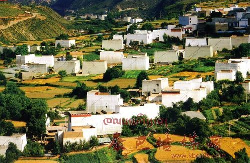 白色藏房組成的村寨依山傍水,在四周農(nóng)田的襯托下,給人一種揮之不去的家園的感覺,令人流連忘返。