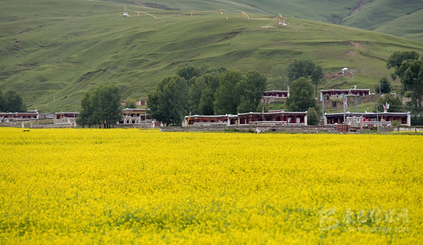 金黃的菜花與青山綠水、藏式民居相融,繪成一幅幅絕美的畫卷。據(jù)悉,道孚縣油菜盛花期將持續(xù)一個(gè)月?!坝筒嘶ㄩ_滿地黃,叢間蝶舞蜜蜂忙;清風(fēng)吹拂金波涌,飄溢醉人濃郁香”。在漫山遍野金黃色的油菜花中,掩映著華麗的藏式建筑,使得每一個(gè)逃離紛繁城市的人都能找到歸宿。(圖片由中新社記者 劉忠俊 攝)