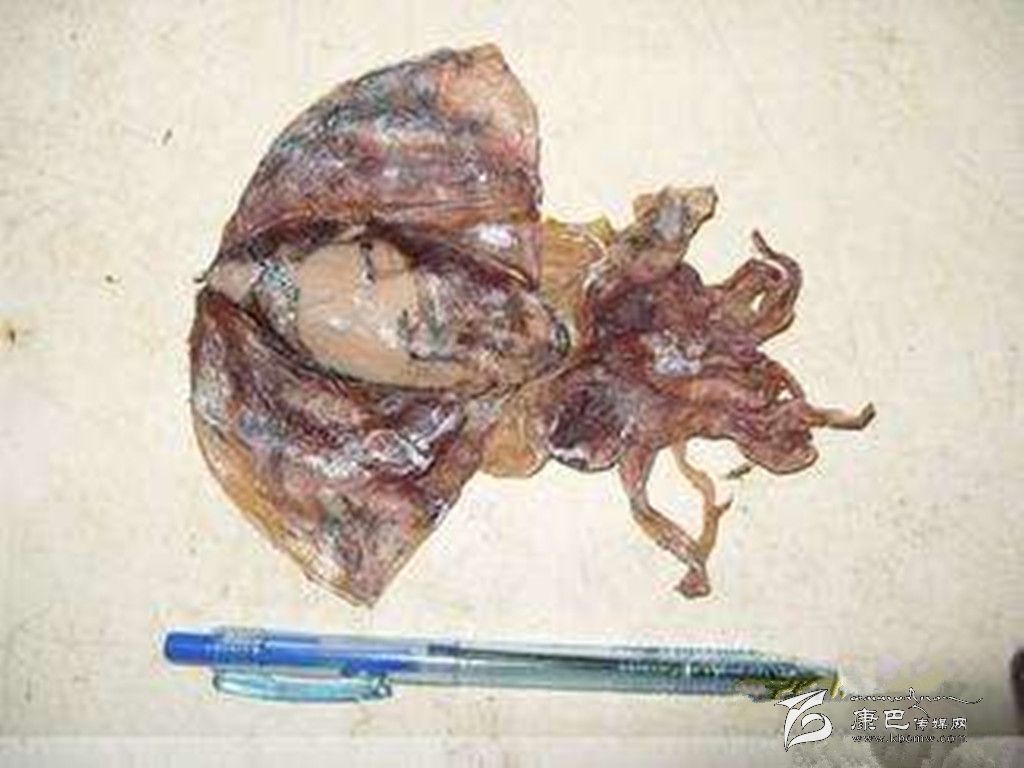 用手指用力按一下胴體的中部,如果有堅(jiān)硬感,就是烏賊魚,如果較軟,就是魷魚。因?yàn)闉踬\魚有一條像船型的硬烏賊骨,而魷魚僅有一條葉狀的透明薄膜橫亙于體內(nèi),所以手感不同。另外,魷魚一般都體形細(xì)長(zhǎng),末端呈長(zhǎng)菱形,肉質(zhì)鰭分列于嗣體的兩側(cè),倒過來觀察時(shí),很像一只“標(biāo)槍頭”,而烏賊魚外形稍顯肩寬,與魷魚的其他特征也有區(qū)別。