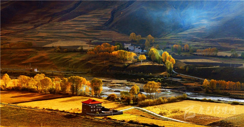 來甘孜賞秋色,怎么能不先做好攻略設(shè)計?其實從八月起,秋天的腳步就已經(jīng)來臨,它最先光臨高原的青稞田地,時間每過去一天,秋日的艷陽將雨季趕得越遠(yuǎn),湛藍(lán)的天空下翻滾起來金黃色的麥浪,一直綿延到雪山腳下。深秋炫目過于不食人間煙火,其實我更喜歡田野里的秋天,有家的溫暖味道。炊煙從藏房民居的屋頂升起,風(fēng)吹麥浪的聲音也壓不過孩子們在田野的歡笑,開始準(zhǔn)備秋收了,又是一次鄉(xiāng)鄰們的聚會,他們揮舞著鐮刀,在歌聲和笑聲中灑下對大地和生活的感恩熱愛。