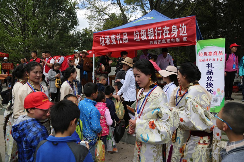 曬佛儀式之后是第三屆“梵音”音樂會。音樂會在由州歌舞團(tuán)演繹的面具舞《祈??刀ā分欣_序幕,13個表演節(jié)目中,既有透人心靈的梵音演唱和二胡演奏,又有激蕩人心的說唱表演和流行演唱,還有質(zhì)樸脫俗的原生態(tài)民歌演唱和群舞鍋莊,時尚和古樸、流行與傳統(tǒng)都在這里得到了集中展現(xiàn)。原生態(tài)歌曲《溜溜調(diào)》,原創(chuàng)歌曲《康定先生》《新編木雅鍋莊》等極具康定特色的節(jié)目更是將情歌故里的人之美、景之美、文化之美展現(xiàn)得淋漓盡致。將近90分鐘的表演高潮迭起、精彩紛呈,現(xiàn)場喝彩聲、歡呼聲此起彼伏,手機(jī)、單反、平板、航拍交相輝映,忙著錄視頻、拍照片、發(fā)微博、曬動態(tài)的人更是比比皆是在。除了精彩的表演,現(xiàn)場身著華麗盛裝的康巴美女也是一道靚麗的風(fēng)景,引得無數(shù)中外游客爭相與之合影留戀。從四面八方趕來叫賣、推銷各種商品的店商和攤販也為此次活動增添了不少生氣。此外,康定團(tuán)市委還特意在活動現(xiàn)場開展了“垃圾變禮品”活動,通過贈送禮品鼓勵大家清理垃圾,此次活動雖然人流巨大但場地衛(wèi)生異常良好。