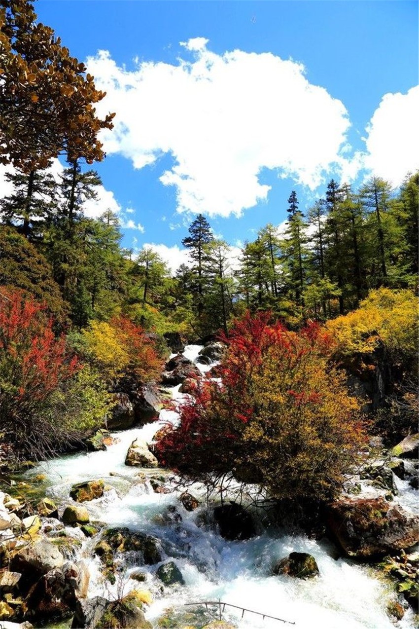 秋季的海螺溝是色彩最為豐富的季節(jié),五彩斑斕的樹(shù)林、碧綠的峽谷、滿目的冰川雪山點(diǎn)綴出一個(gè)夢(mèng)幻的童話世界,猶如女?huà)z補(bǔ)天時(shí)的彩石掉落在凡間。