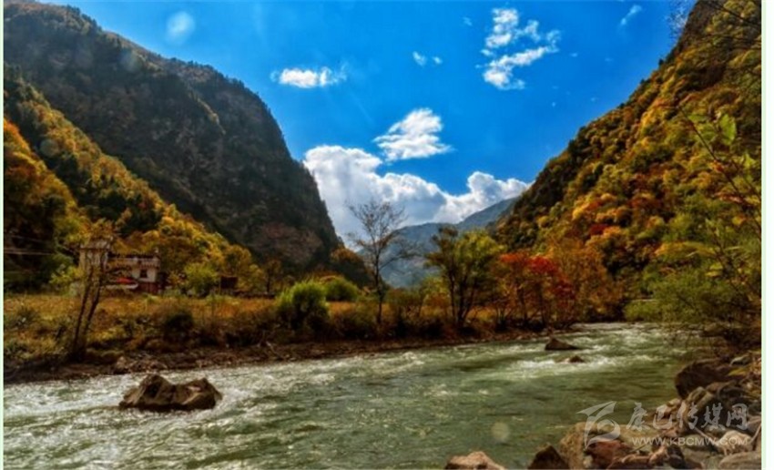 東谷河原名牦牛河,在丹巴縣五個(gè)主干水系中,它是最小的一條,兩岸多為峽谷地貌,僅在支溝匯合處出現(xiàn)有平壩草地。在陡峭高聳的河谷兩岸,針闊葉混交林呈現(xiàn)出深淺不同的綠色,既有青黛,墨綠,又有嫩綠,草青及四季輪番開(kāi)花的不同品種的大小杜鵑。還不時(shí)有珍禽出沒(méi)。每當(dāng)秋高氣爽的季節(jié),一團(tuán)團(tuán),一簇簇的紅葉伴隨杜鵑花在林間綻放,伴以宛轉(zhuǎn)的啾啾鳥(niǎo)嗚;河水清澈明亮,時(shí)而奔騰而下,形成飛瀑,時(shí)而伴著叮咚之聲潺潺而過(guò),這種美景何處能有?老革命家胡耀邦同志游覽后,對(duì)此青山綠水贊不絕口,并稱(chēng)之為“天然盆景”!盆景藝術(shù)一向以“無(wú)聲的詩(shī)詞,立體的畫(huà)卷”來(lái)形容。牦牛谷景點(diǎn)正是一個(gè)有著巨大篇幅的詩(shī)詞,一個(gè)有著廣闊的立體畫(huà)卷。