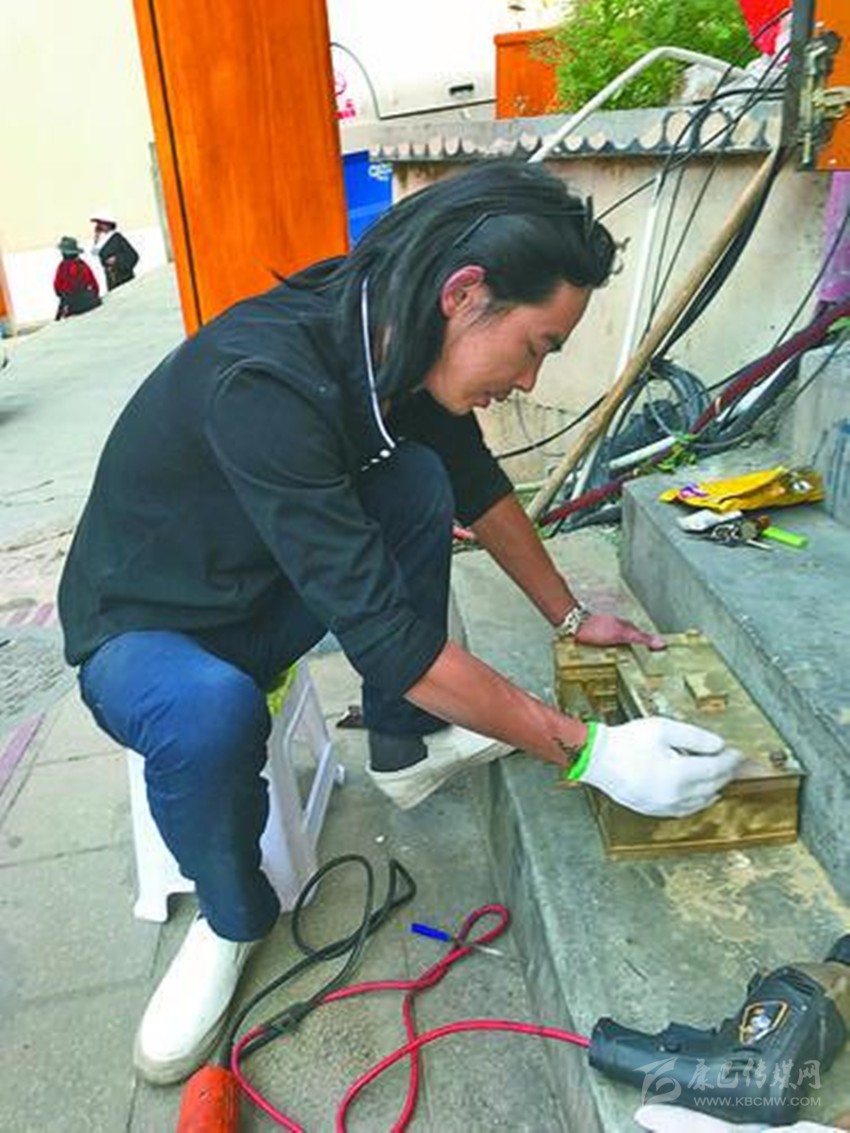 從2016年至今,寸潤炳打造出15座銅胚、鎏金、礦物顏料著色的德格印經院模型,已經售賣7座,剩下8座已經有商家訂貨,將在下月取貨?!懊孔蹆r一萬八千元,已制作的全部賣出,又有4座的訂單。只要是好東西,肯定有人會買?!贝鐫櫛f。