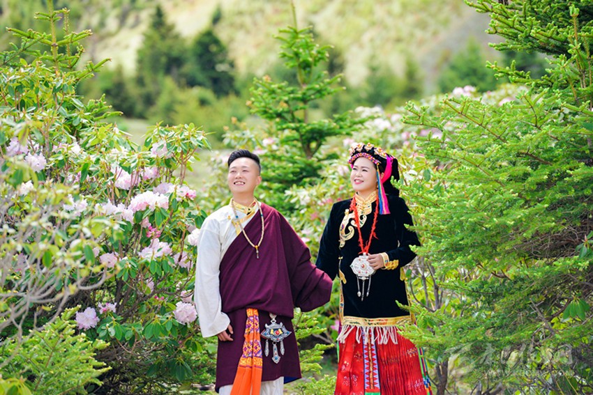 漫步在村上,藏寨、古寺、花海相映成趣,當(dāng)?shù)厝罕?、游客?lái)來(lái)往往;放眼望去,漫山遍野的粉色與民居絳紅的外觀渾然一體,小孩在花叢間追逐打鬧,有的忙著照相留念,有的準(zhǔn)備開始野炊,大家都在享受著難得的旖旎風(fēng)光。
