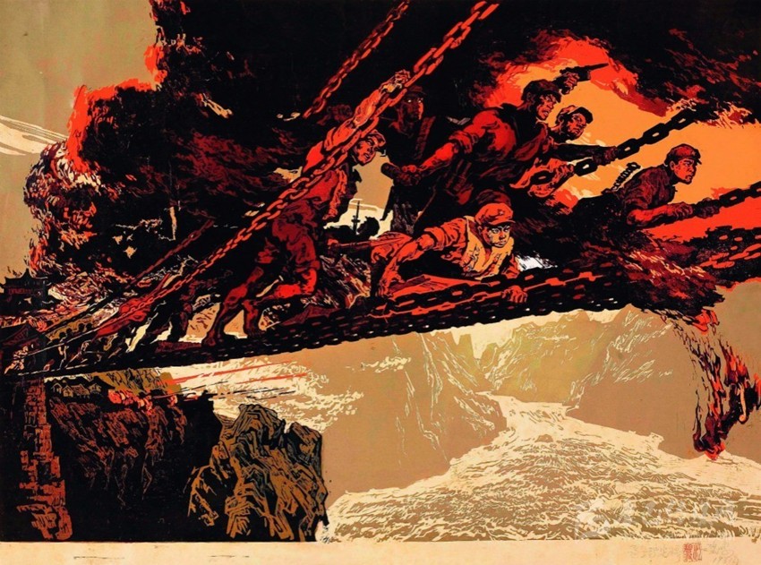 中革軍委于1935年5月26日命令紅一軍團(tuán)及主力在兩天半內(nèi)向?yàn)o定橋急進(jìn)。紅一軍團(tuán)將奪取瀘定橋的任務(wù)交給了王開(kāi)湘、楊成武領(lǐng)導(dǎo)的紅4團(tuán)。紅4團(tuán)遂沿著大渡河西岸向?yàn)o定橋一路飛奔,邊走邊打。沿途山路陡峭崎嶇,危機(jī)四伏。