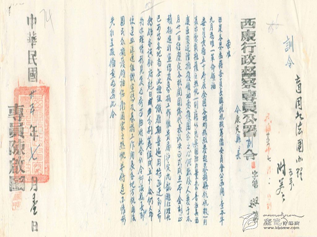 這是一份在1936年7月,由西康行政督察專員為動員西康各界民眾捐款購買飛機發(fā)出的訓令;康定城中及西康省康屬地區(qū)各縣民眾捐款購飛機的活動一直持續(xù)到1940年,據(jù)1940年4月的《西康新聞》,在15日、16日兩天連續(xù)刊登“西康省中國兒童號飛機捐籌募款數(shù)目表”,公布了西康省民眾捐款購飛機的結(jié)果。