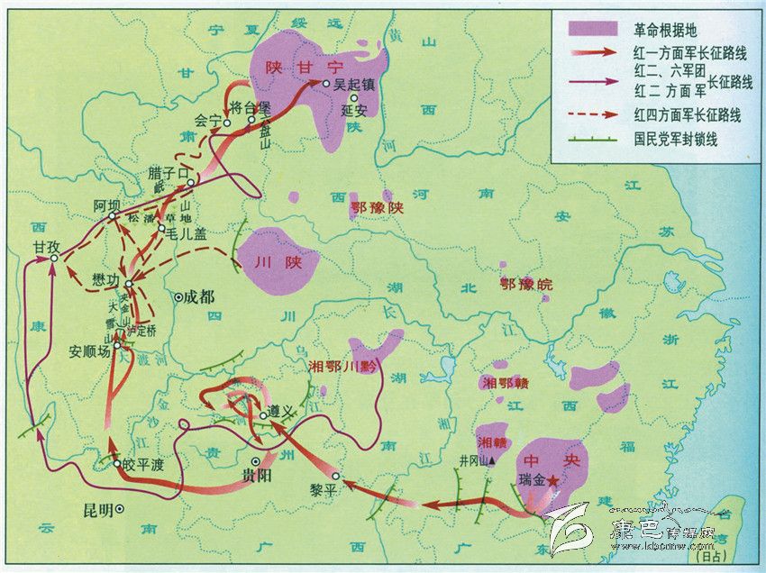 1934年10月,紅一方面軍從江西中央革命根據地出發(fā),1935年5月,紅一方面軍由雅安石棉沿大渡河進入甘孜州地界,這之前,他們突破了難以計數(shù)的圍追堵截,皎平渡巧渡金沙江,安順場強渡大渡河,跳出了包圍圈,為抗日,5月29日,紅軍拿下天險瀘定橋后,奇襲蘆山、寶興,翻越夾金山,進入阿壩州地界。