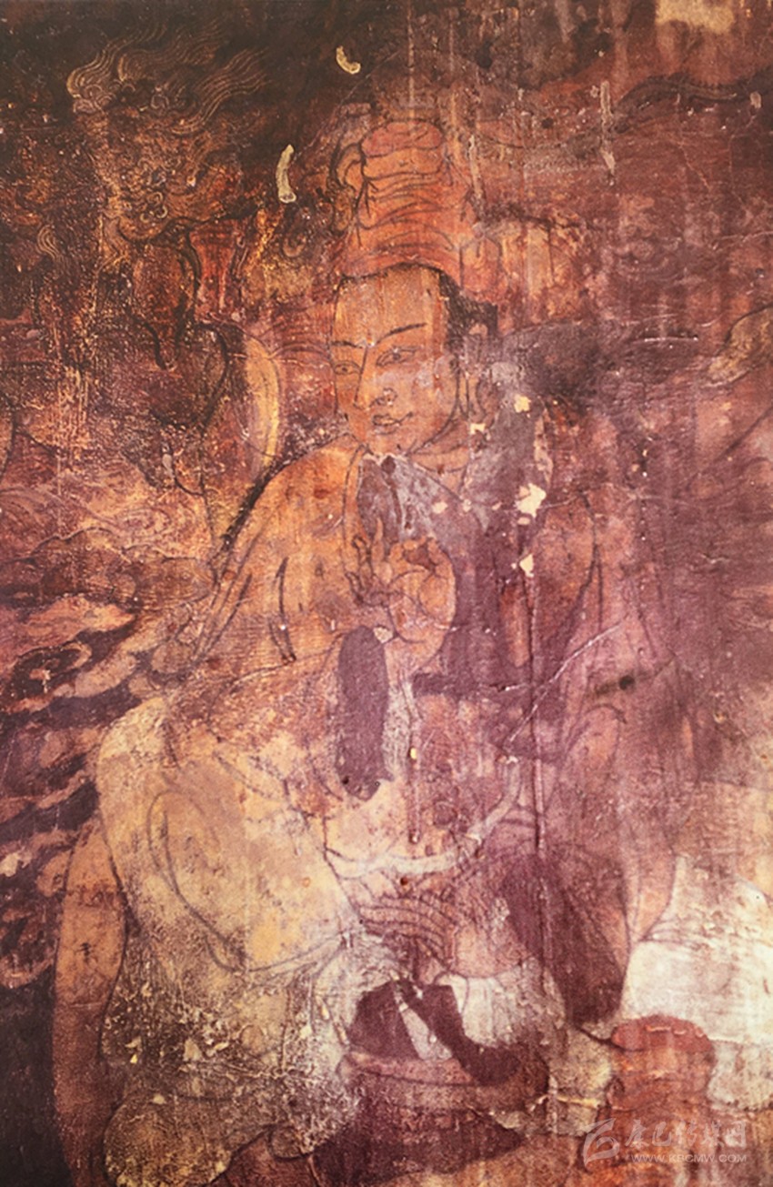 傳說釋迦牟尼悟道成佛后,身上散發(fā)出耀眼的光芒,故常人無法從光芒中看清他的容貌。當(dāng)釋迦牟尼路過水池時(shí),水里的倒影減弱了光的強(qiáng)度,“工巧天”毗首羯摩便根據(jù)這個(gè)倒影畫了佛祖的第一幅畫像,這張畫被稱為“水撈畫”。