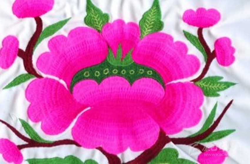 在魚(yú)通,刺繡以花朵為主。會(huì)繡花的女人,被稱(chēng)為“花匠”?!靶』ń场眰儚氖鄽q就開(kāi)始接觸刺繡,通過(guò)年長(zhǎng)者口傳身授,自學(xué)的方式成為一代繡女。稚嫩的雙手,再經(jīng)過(guò)時(shí)間的洗禮,刺繡的技巧早已爛熟于心,在心的指引下,穿針引線(xiàn),針尖如麥芒,各色陪底線(xiàn)來(lái)回,穿梭于布料的經(jīng)緯之間。買(mǎi)回青布,從下手的第一針開(kāi)始,整幅圖的構(gòu)架便了然于心,各式花朵圖案成竹在胸,線(xiàn)條在暗自游走,勾勒越來(lái)越清晰。每一次的飛針走線(xiàn),是婦人手上的一針針,一線(xiàn)線(xiàn),都在為作品最后的完美收關(guān),錦上添花,做著必不可少的鋪墊。