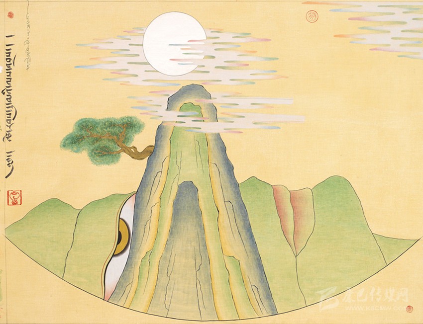 15世紀以來,唐卡發(fā)展所恒定的兩個元素:一是平面構(gòu)圖的神佛之境,另一則是吸收大青綠山水精髓。正如DNA鏈的雙螺旋結(jié)構(gòu)一般,使唐卡繪畫在歷史時空中穿插縈繞,在雪域各地生根開花。到了公元20世紀初,照片的高度寫實促使藏地畫家邁出了革新步伐,使得唐卡繪畫逐漸擺脫傳統(tǒng)束縛,開啟了“人”的覺醒。衛(wèi)藏地區(qū)出現(xiàn)了“根敦群培、安多強巴”引入寫實主義的嘗試,成為當今西藏“布面重彩”的先驅(qū)。新中國成立后,內(nèi)地的美術(shù)創(chuàng)作積極影響了三大藏區(qū)的繪畫發(fā)展,上世紀80年代,四川康區(qū)“甘孜藏畫”肇起,在《嶺·格薩爾王》人文主義的召喚下,《雪山兒女》《唐東杰布》《新概念唐卡》正從歷史深處一路走來。而近年來,安多藏區(qū)則創(chuàng)新出了“藏族祥巴版畫”,祥巴版畫不僅是從材料技法上對西藏繪畫的豐富,更是藏地畫家們在自覺不自覺的求新、求變;甚至在傳統(tǒng)唐卡領(lǐng)域,民間畫師也都在紛紛嘗試將傳統(tǒng)唐卡和現(xiàn)代審美相結(jié)合。這一切,正是唐卡繪畫從傳統(tǒng)走向現(xiàn)代、由宗教博衍至生活的演變過程,在這個過程里,藏地畫家不僅在畫面的形式和語言上完成了傳統(tǒng)與當代的統(tǒng)一,還將西藏的審美特質(zhì)虹化為作品的精神內(nèi)核。這也是唐卡藝術(shù)第二次“從香巴拉到人間”的過程,成為民族文化發(fā)展的新坐標。