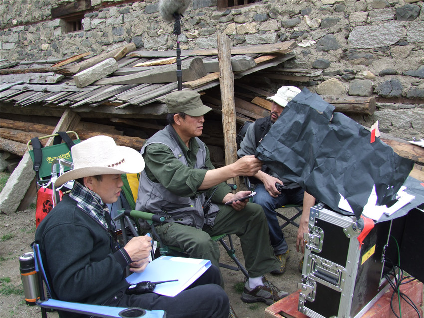 指導(dǎo)電影拍攝中的多吉彭措。