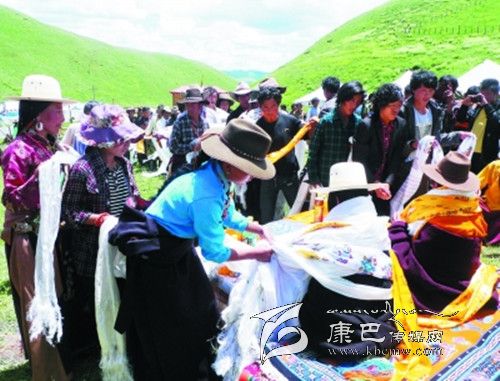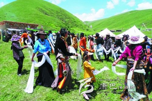 剛走進(jìn)宗塔壩子,記者便意識到一個人想象力的貧乏,現(xiàn)實中的宗塔草原以一種與眾不同的美把一個人的目光悄悄托起。四周長滿牧草的小山像溫順的花瓣,靜靜包裹著那一片平坦的壩子,如果一個人眺望的目光足夠高足夠遠(yuǎn),山和壩子的造型會讓人聯(lián)想到一朵蓮花,而壩子里小點(diǎn)般的帳篷就像一顆顆蓮子,世世代代的宗塔人便在這蓮花般盛開的天地里穿行、繁衍生息。