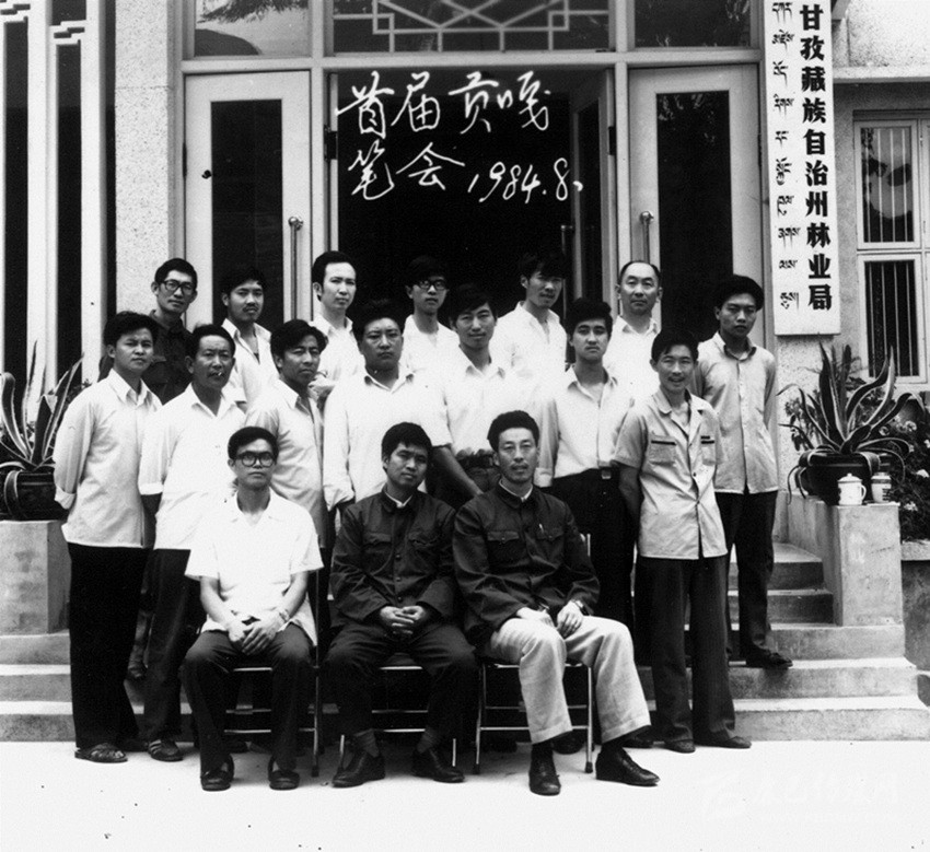 我們也在籌備,這就是《貢嘎山》雜志創(chuàng)辦以來的第一次筆會。根據(jù)當(dāng)時我州作者的創(chuàng)作情況,編輯們商議決定搞一次筆會,這次筆會以小說創(chuàng)作為主。當(dāng)時我州的詩歌創(chuàng)作非?;钴S,很多從學(xué)校出來參加工作的年青作者都很喜歡詩歌創(chuàng)作,創(chuàng)作水平也還不錯,而且還活躍著很多的文學(xué)社團,散文寫作的人也不少,唯獨就是小說創(chuàng)作始終在作者人數(shù)和質(zhì)量上都達不到刊物的要求。針對這種現(xiàn)狀,我們對當(dāng)時發(fā)表和寫過小說的所有作者都進行統(tǒng)計,并發(fā)出了參加筆會的約稿信,并決定1984年8月在康定姑咱鎮(zhèn)林業(yè)管理局招待所舉辦首屆《貢嘎山》筆會,通過近一年的準(zhǔn)備,檢視作者來稿情況確定了18位作者(一名女作者)參加首屆《貢嘎山》筆會,他們是仁真旺杰、高旭帆、胡杰、劉富貴、王浩東、宋濤、格妮措、杜仁信、王方霖、劉述義、孫浩東、牟子、朱長安等,郭昌平參加了開班后有事走了,給我們留下這張珍貴的合影照片。