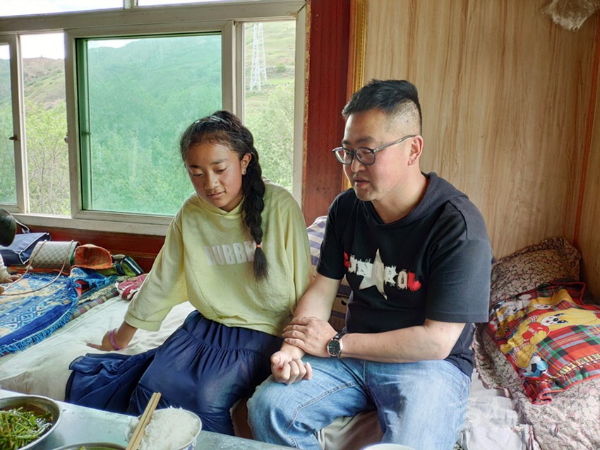 在路上,孫橙陽(yáng)十分焦急,立刻和他學(xué)生洛絨巴登的媽媽、德拉龍村第一書(shū)記邱瑪溝通,想盡快與患者取得聯(lián)系。