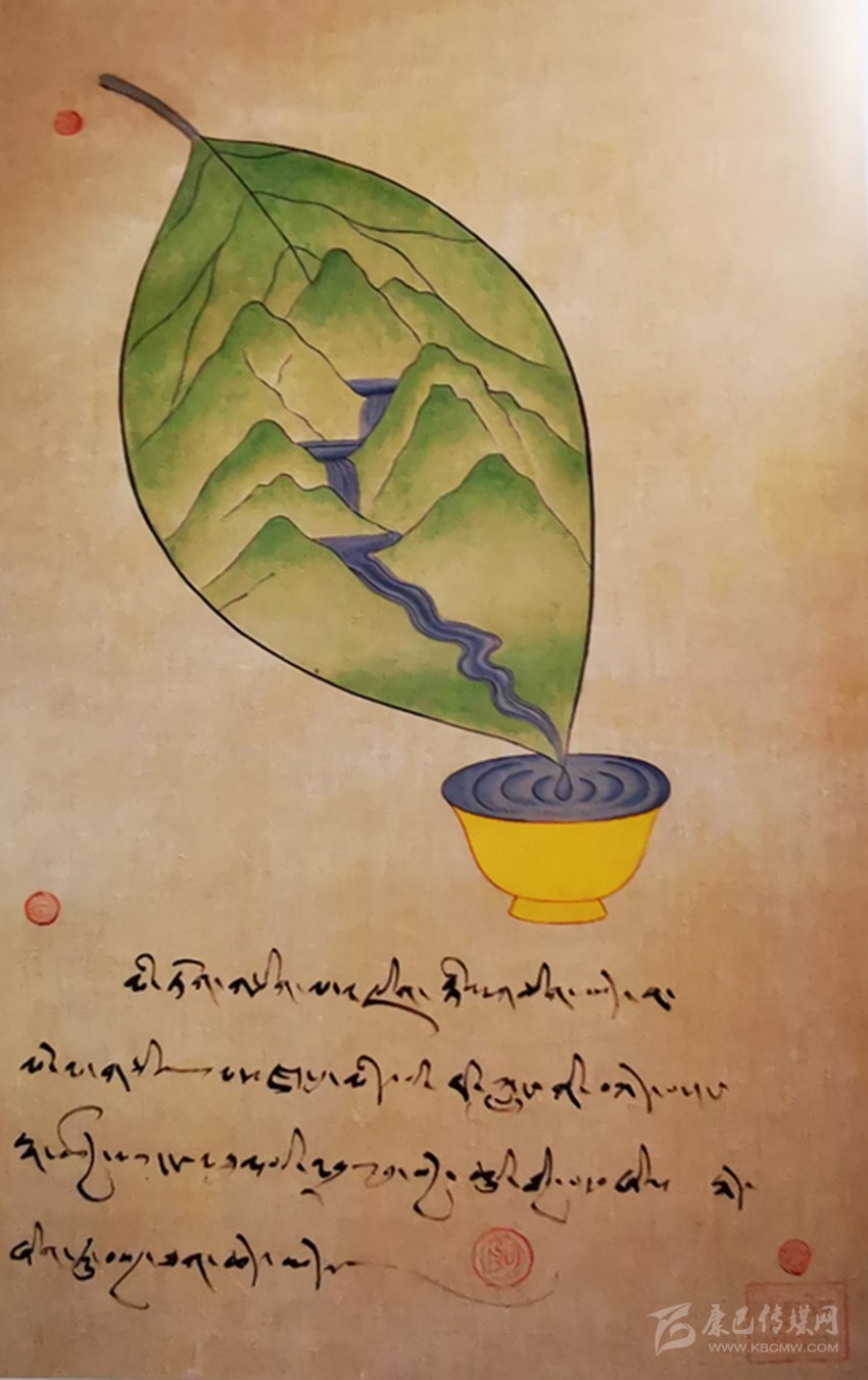 乍一看,儼然一名尋常的鄰家美少女。畫面主體除了度母、一座山和身下的毛毯外,僅于最側(cè)邊寫上藏文、蓋上印章,便無任何需要宗教知識(shí)背景來認(rèn)識(shí)畫面的元素,極為通俗簡(jiǎn)潔。