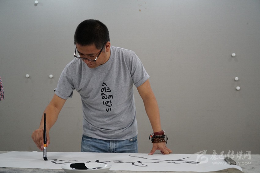 耷·瓊培擁有不少身份認(rèn)證,譬如:“新概念”唐卡創(chuàng)始人、傳統(tǒng)藏文書法藝術(shù)傳承人,歌者、畫家、詩(shī)人、學(xué)者,乃至當(dāng)代藝術(shù)家等不一而足。而在他看來,與其“對(duì)號(hào)”上述任何頭銜,毋寧說自己是唐卡沿襲至今的新時(shí)代探索者之一。
