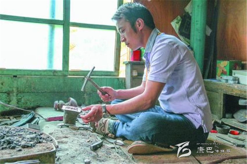 從金沙江支流贈曲河溯流而上,不到半個小時便可到白玉縣河坡鄉(xiāng)。就是這個不起眼的“小地方”,從1300多年前便開始鑄造兵器,曾被譽為“格薩爾王的兵器庫”。2008年,“藏族金屬鍛造技藝”被列入國家級非物質(zhì)文化遺產(chǎn)名錄,其中便包括以河坡為代表的“藏刀鍛制技藝”。 在記者的想象中,河坡鄉(xiāng)應(yīng)該是一派作坊連片、熱火朝天、叮叮當(dāng)當(dāng)?shù)氖止ぶ圃靾鼍?。然而,?dāng)記者來到這里,卻沒有看到這樣的景象。原來,河坡鄉(xiāng)的手工藝生產(chǎn)模式以家庭作坊為主,每家每戶的“工作室”常常設(shè)在自家房屋二樓一角。在白玉河坡鄉(xiāng)每個家庭作坊,通常都有自己擅長的專業(yè)產(chǎn)品和特色。例如,手工藝人根秋丹貞擅長制作佛具, 伍金則擅長打制藏刀。其他如村多、麥達、麥學(xué)等各個村寨,還分散著諸多以生產(chǎn)馬具、飾品、日常生活用品等為主的家庭作坊。