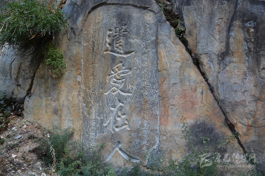 《纜轡澄清》:在《遺愛在人》左上方的石壁上,為民國(guó)年間四川邊軍代理分統(tǒng)高德翼題,攬轡:拉住馬韁。澄清:平治天下。表明了其澄清天下的抱負(fù)。由于雨水侵蝕,已不是很清晰了。