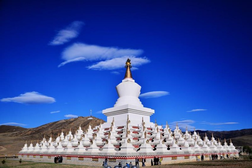 這種尚白的文化心態(tài)在藏地處處可見:屋頂四角及門楣砌白石、要道山口的嘛呢堆上放白石、祭祀山神和箭桿山系上一束雪白的羊毛、供神煨桑時撒上糌粑,等等。每逢佳節(jié),藏族人們都要將家里的糌粑口袋、酥油桶、酒皿、房頂、要道、山頂?shù)认瞪习籽蛎员砥砀l鼮牡脑竿灿冒籽蛎珌肀硎炯儩嵟c忠誠。(據(jù)《甘孜史話》)
