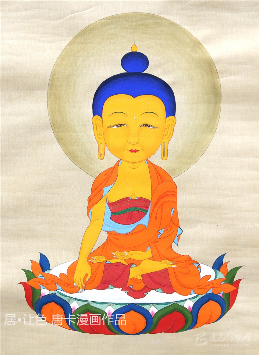 唐卡是藏族最具代表性的藝術(shù)門類之一,在其千年的傳承歷史中吸收融合了印度、尼泊爾等多地的藝術(shù)元素,發(fā)展成為極具雪域特色和審美價值的藝術(shù)形式。傳統(tǒng)唐卡缺乏立體感和形象感,畫面層次模糊,人物形象單薄,不利于民族文化傳承,“對于不懂畫的人來說,這種畫法他們看不懂?!被诖耍印ぷ屔珜μ瓶ɡL畫技法作了改良,結(jié)合現(xiàn)代漫畫,以寫實的手法,實現(xiàn)活態(tài)傳承、永續(xù)流傳目的。