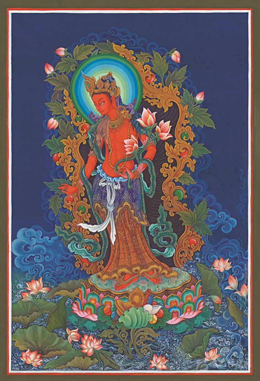 元朝以后,尼瓦爾唐卡慢慢淡出了中原,內(nèi)地民眾對這門優(yōu)秀的繪畫藝術(shù)也慢慢缺乏詳細認知。而在今天,古老神秘的尼瓦爾唐卡在距離“工巧天”阿尼哥大師北京傳藝的八百年后,再次閃耀于我們的視野里。視覺只是一扇窗,但當你在尼瓦爾唐卡前面開啟了這扇窗戶,您便開啟了眼耳鼻舌身意,于是視覺、聽覺、嗅覺、味覺、觸覺也就一起活躍起來了。讓我們好好享受尼瓦爾唐卡藝術(shù)帶來的精神盛宴吧!我相信其率真且極具生命活力的獨特美感必將深深地打動尊貴的您!