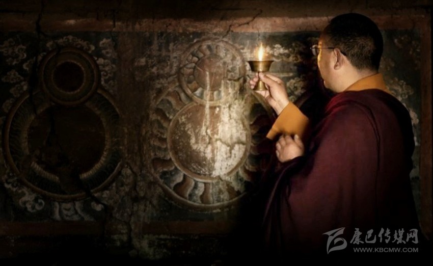 澤成郎達(dá)介紹捧塔寺內(nèi)現(xiàn)存的古壁畫(huà)。