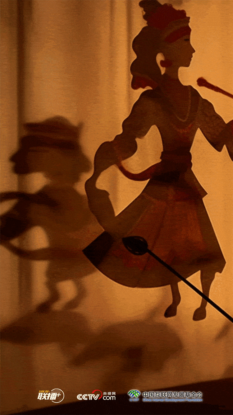 聯(lián)播+“一口道盡千古事,雙手對舞百萬兵?!逼び八嚾瞬倏仄ぶ苹蚣堉频牟噬芭夹蜗螅柚饩€照射在半透明的幕布上創(chuàng)造出動態(tài)圖像,演繹古往今來、跌宕起伏的精彩故事。