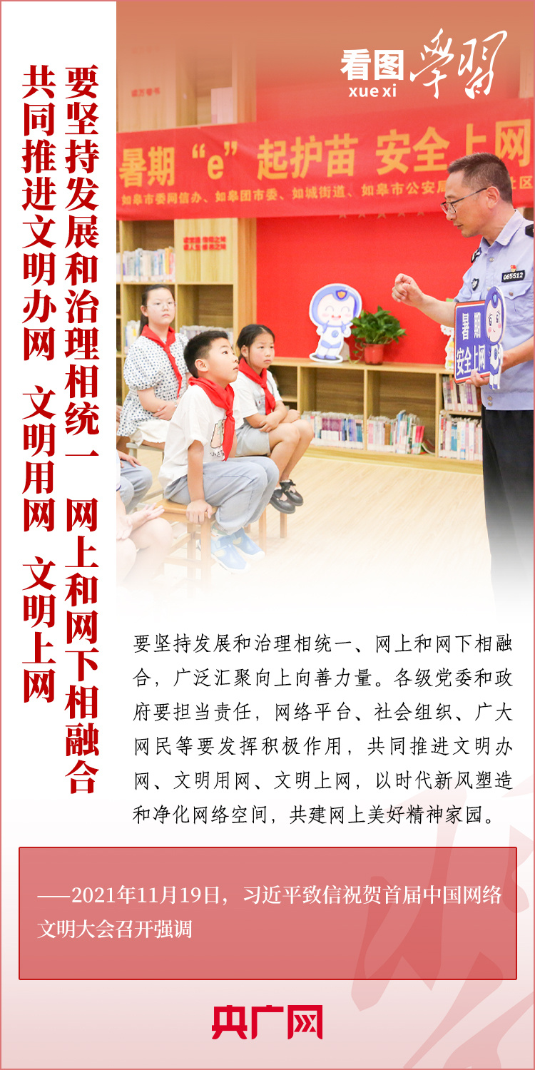 “堅持發(fā)展和治理相統一、網上和網下相融合,廣泛匯聚向上向善力量”“共建網上美好精神家園”。習近平總書記格外重視網絡空間這一億萬民眾共同精神家園的建設,圍繞網絡文化和網絡強國建設作出了一系列重要深刻論述。