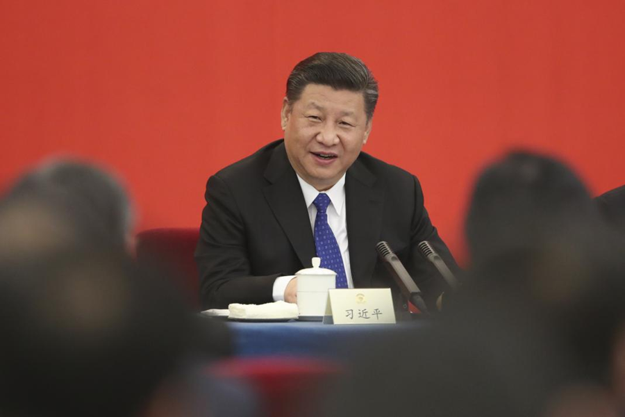 ??2018年3月4日下午,中共中央總書記、國家主席、中央軍委主席習(xí)近平看望參加全國政協(xié)十三屆一次會(huì)議的民盟、致公黨、無黨派人士、僑聯(lián)界委員,并參加聯(lián)組會(huì),聽取意見和建議。 新華社發(fā)(盛佳鵬 攝)